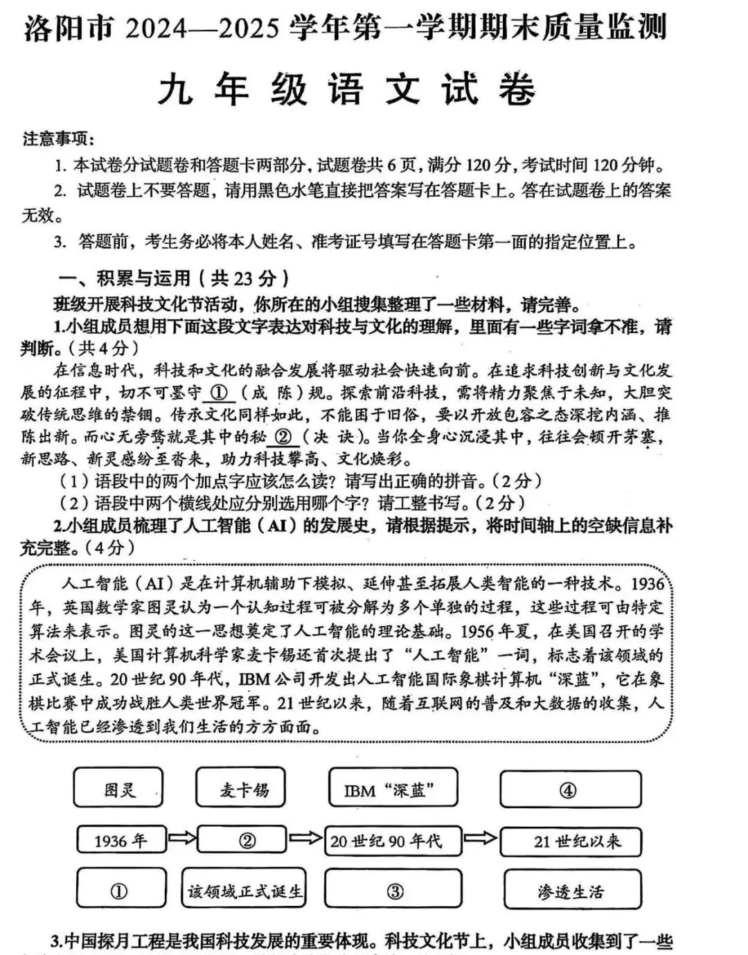 「洛阳市2024-2025学年九年级上学期期末(7科全)」