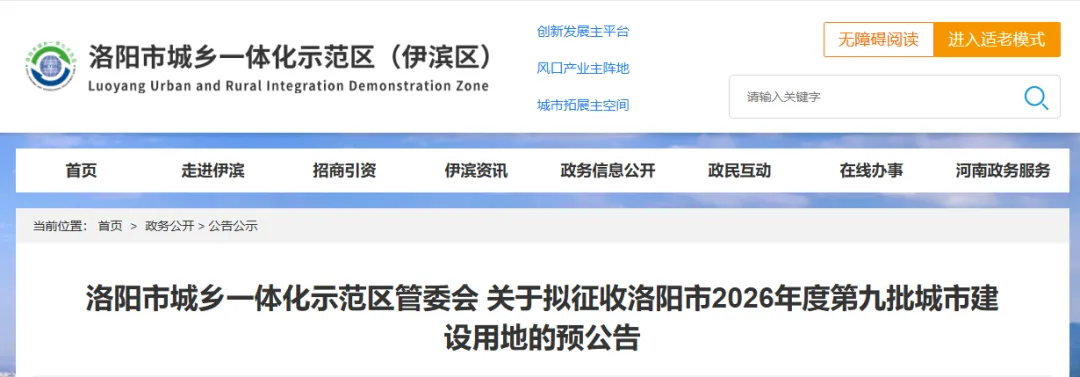 当前位置:首页>洛阳>洛阳最新征地预公告