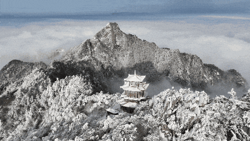 雪后的白云山,是一场对“仙山”二字最直观的诠释。群山覆上纯净的银白,雾凇将每一棵树都雕琢成琼枝玉叶。云海在山巅之下翻涌,玉皇顶矗立其上,仿佛是通往仙界的大门。