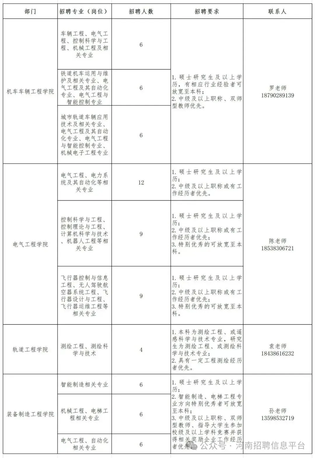 学校现有专任教师近500名,副高级以上教师80余人,设有轨道工程学院、机车车辆工程学院、运输管理学院、信息工程学院、电气工程学院、装备制造工程学院、马克思主义学院、基础教学部、体育教学部、中专部等七院三部。现已形成以城市轨道交通运营管理、城市轨道交通车辆技术、城市轨道交通工程技术、铁道通信与信息化技术、铁道供电技术五个主干特色专业为主,空中乘务、大数据技术、物联网应用技术、电子商务等专业协调发展的专业格局。根据学校未来发展需要和师资队伍建设规划,现面向社会公开招聘专任教师岗、辅导员岗。