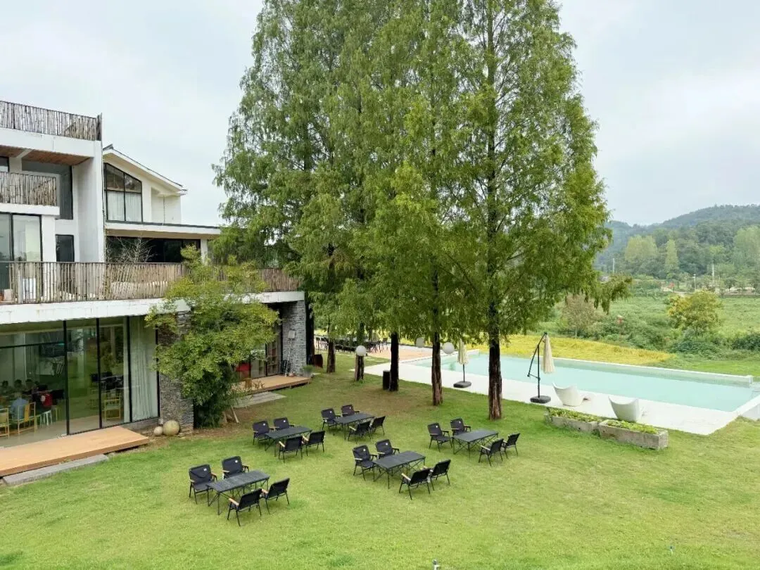 斜阳耒筑·银杏谷店的设计师团队用三年时间扎根于此,将现代美学与山野灵气交织,让这座隐秘山谷成为都市人寻找内心安宁的秘境。共设有客房17间、大梨餐厅(包含包厢及45人散座)、150㎡独立会议室。同时配置了草甸子剧场、杏叶泳池、碧落潭、有机蔬菜农场等公共空间。
