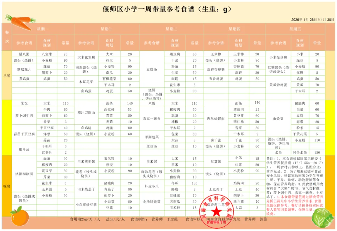 下周营养食谱