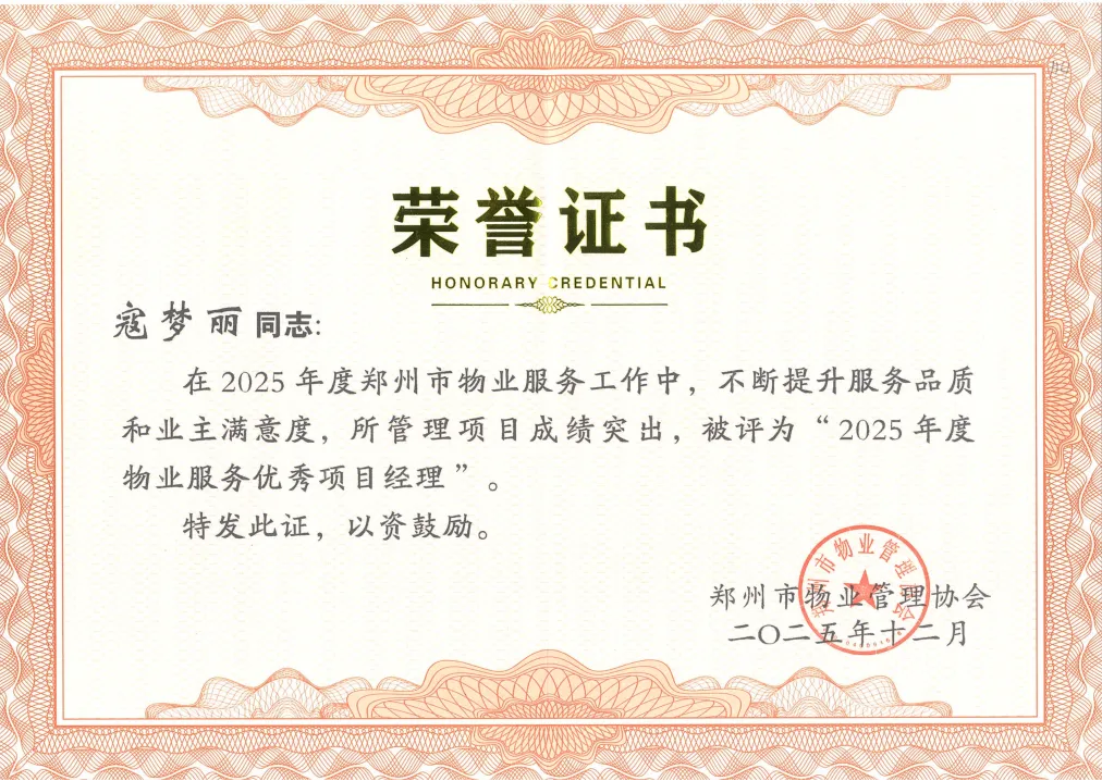 近日,运营公司荣获郑州市物业管理协会2025年度物业服务“优秀会员单位”称号,水投壹号院项目部寇梦丽被评为“2025年度物业服务优秀项目经理”,该荣誉不仅是对公司过去一年城市资产服务工作的认可,更是对其深耕物业领域,提升服务品质的有力肯定。