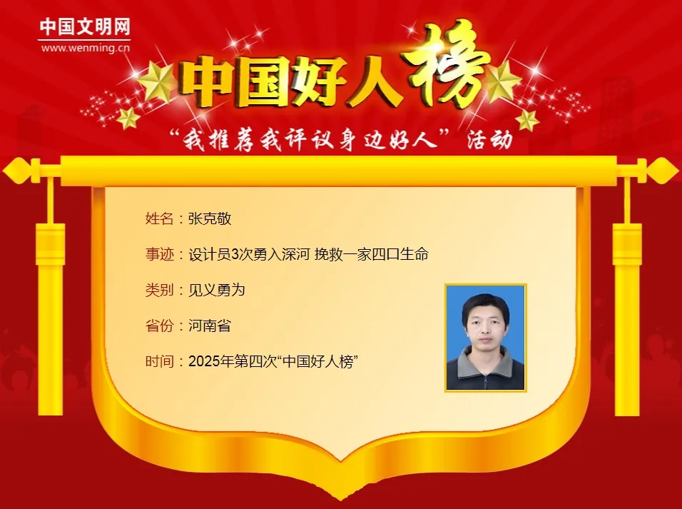 1月23日,2025年第四批“中国好人榜”榜单出炉,洛阳市民张克敬上榜。
