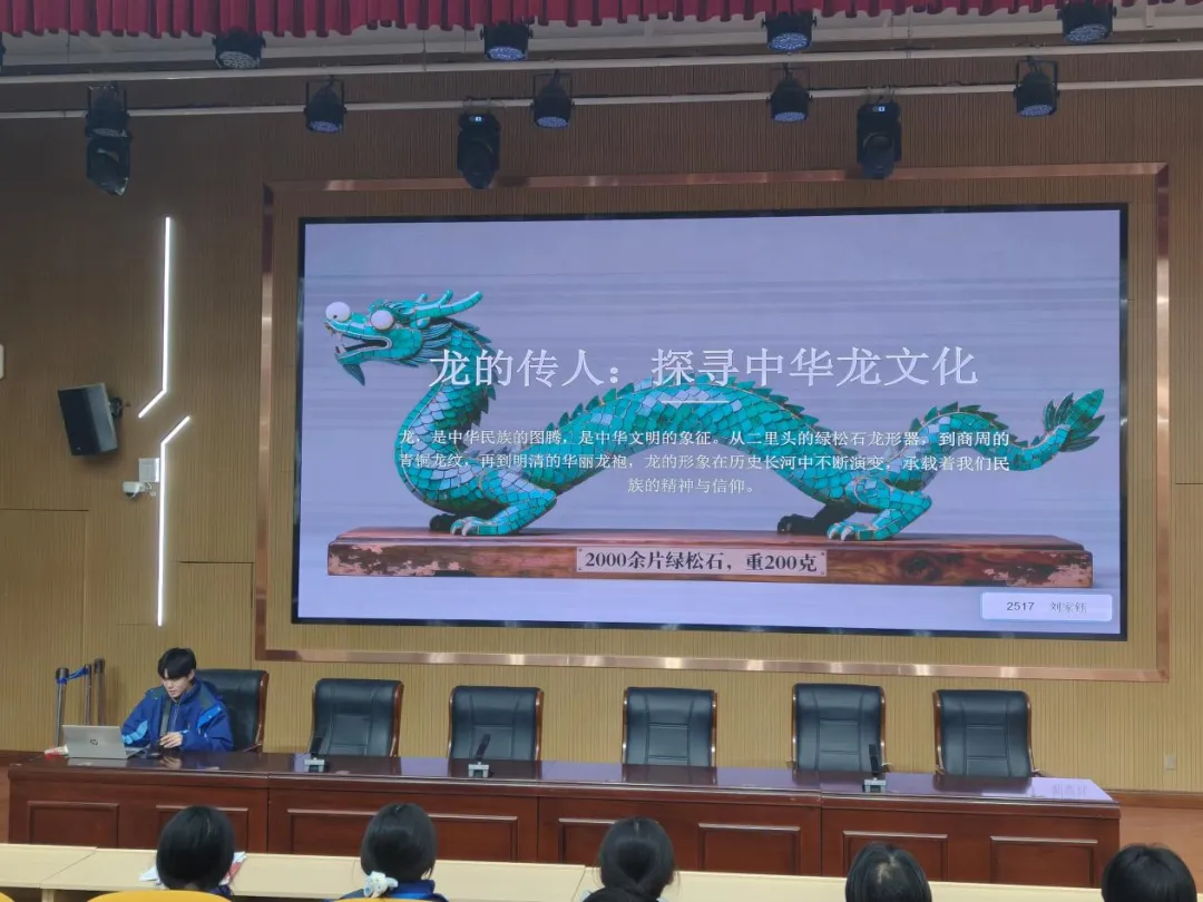 2517班以“龙”意象为楔入,探讨二里头龙形器与中华民族精神血脉的赓续关联;2518班以“绿松石”为线索,串起跨越数千年的物质文化交流史;2519班聚焦研学带来的成长印记,诠释这段旅程作为青春必修课的深远意义;2520班则分享了对文物活化利用的创想,展示了如何以AI赋能,让沉睡的文物在当代“活”起来。