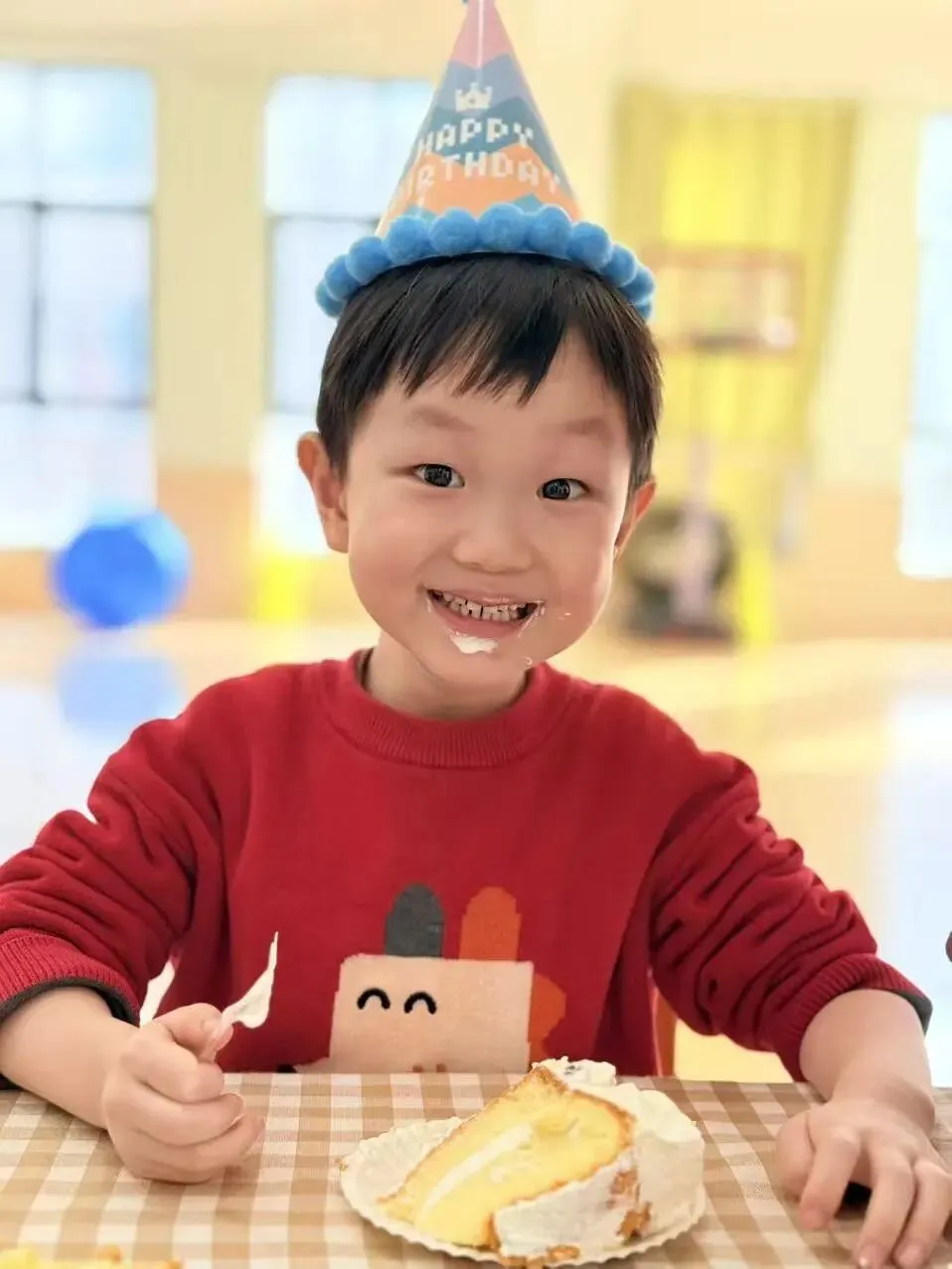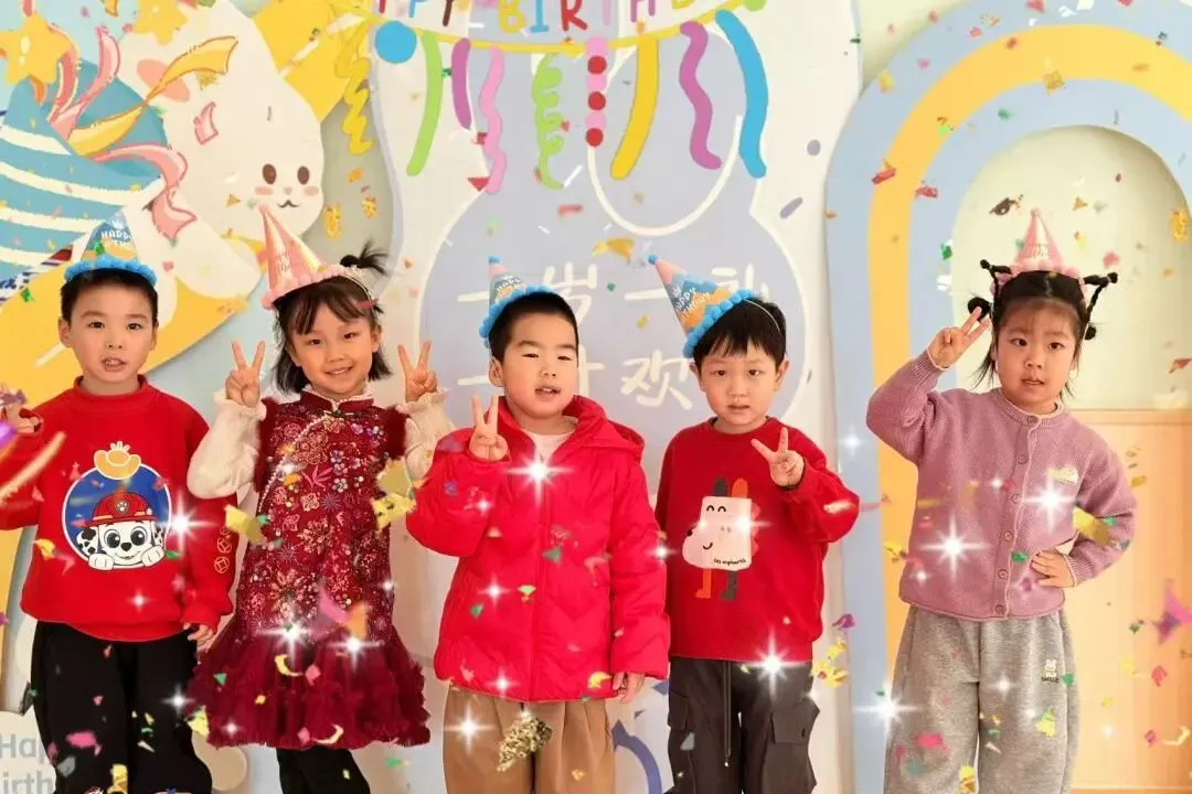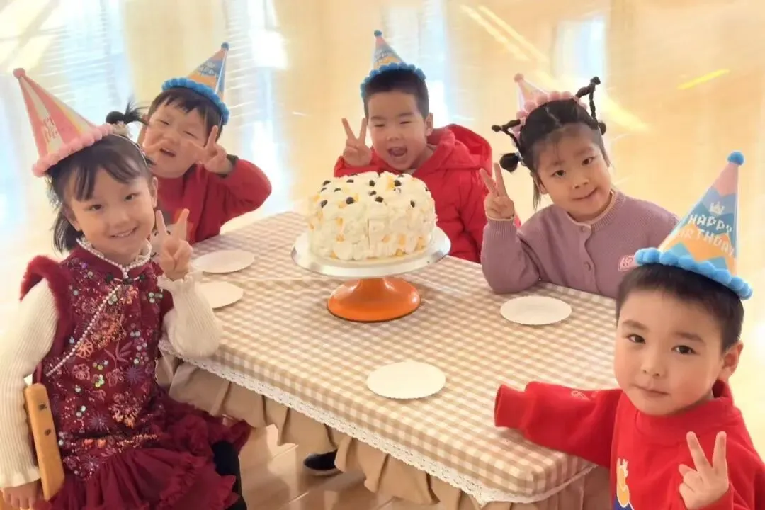 欢快的生日旋律与喜庆的新年童谣交织萦绕,小寿星们在老师们温柔的陪伴下登场啦!稚嫩的脸庞上洋溢着藏不住的自豪与欢喜。