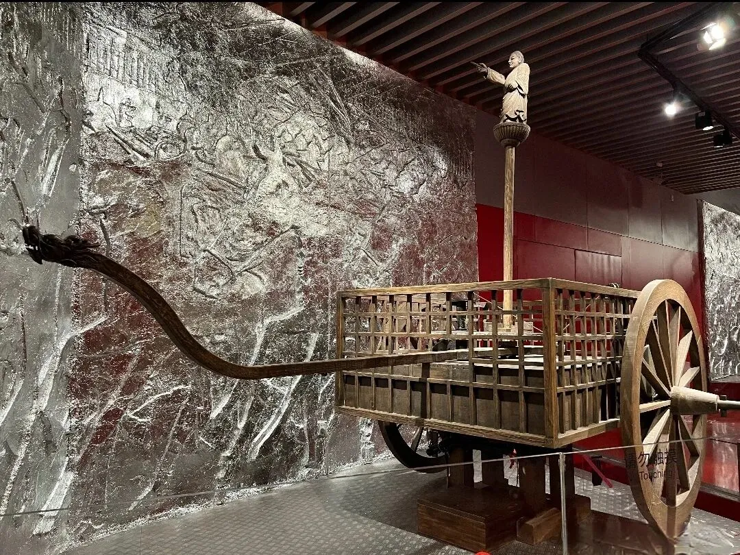 数月之后,一辆崭新的指南车驶出作坊。试车那天,洛阳城万人空巷。只见四马牵引的车厢上,木人昂首而立,无论车夫如何转弯,木人的手臂始终稳稳指向南方。
