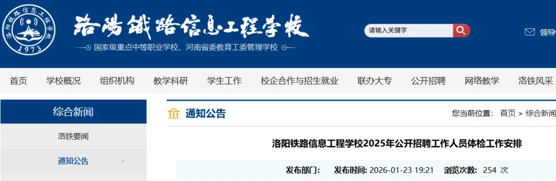 / 洛阳铁路信息工程学校 2025 招聘体检通知|25 人入围,1 月 26 日集合体检 /