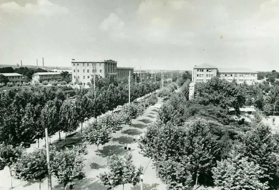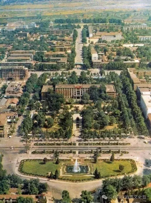 紧跟着,横贯洛阳市东西的中州大道于1955年底竣工,彻底把涧西、西工和老城连接起来,形成了新洛阳城的主动脉。随后是西工中心花园(实际上也是市中心花园)周边的标志性四大建筑:百货大楼、邮电大楼、银行大楼和国际旅社大楼。