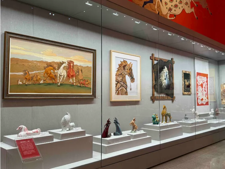 其中,洛阳三彩所属的“骥跃鸿途”展区,紧扣丙午马年核心主题,集中遴选剪纸、年画、皮影、陶瓷、石雕等各类传统技艺非遗作品,从不同维度解读马所承载的文化意蕴,成为本次展览的一大亮点。