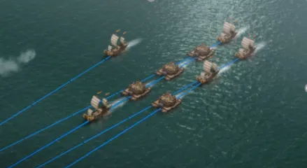 赤壁之战剧本致敬经典的同时,进行了大胆创新,引入了行业首创的火攻与水战。