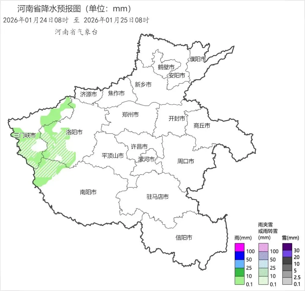 随着低槽的东移,明天(25日),河南将迎来一轮弱雨雪天气过程。其中在西部、北部有零星小雪或小雪,其他大部地区则是会由小雨逐渐转为雨夹雪或小雪,东南部局部有短时冻雨。此外明天早晨,中东部局部还会有雾,积雪叠加低能见度天气,大家在驾车出行时一定要谨慎慢行。