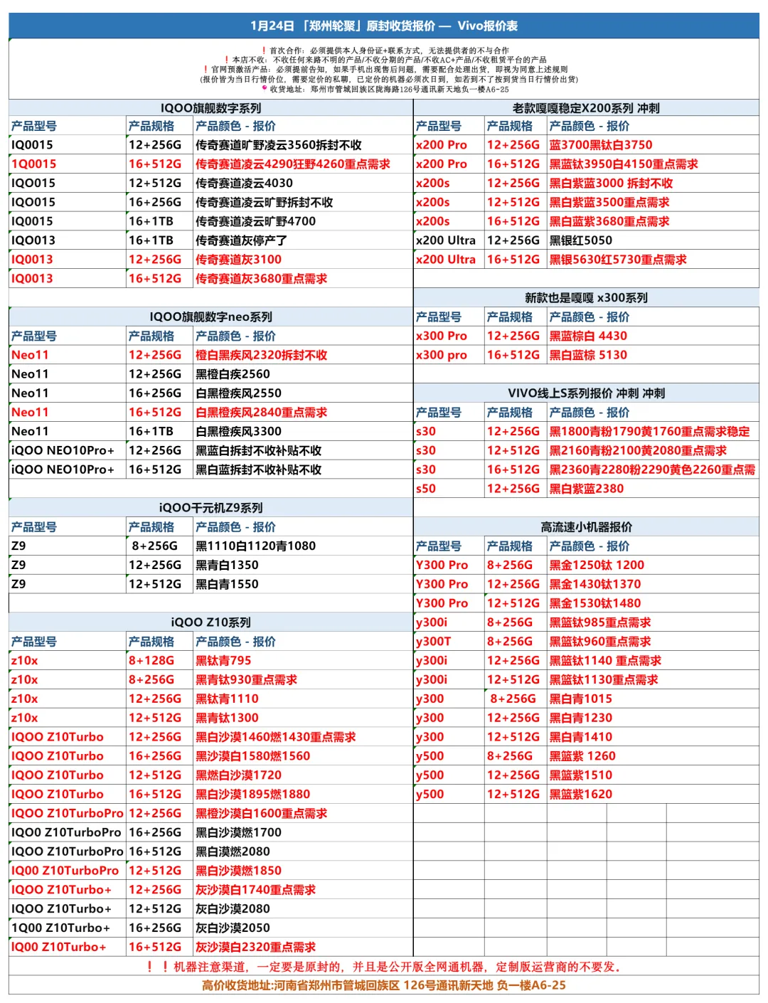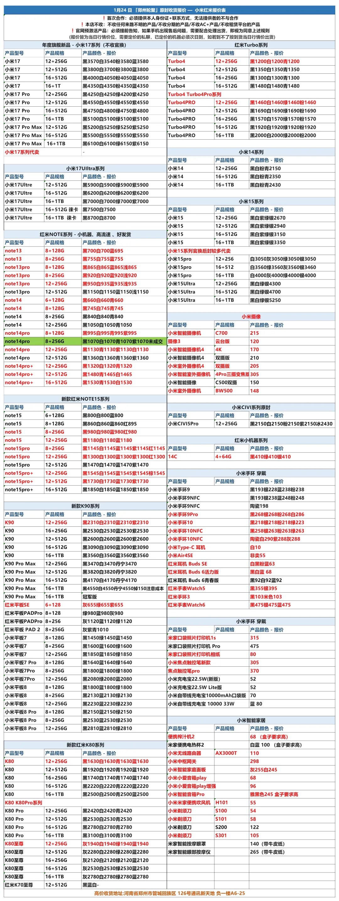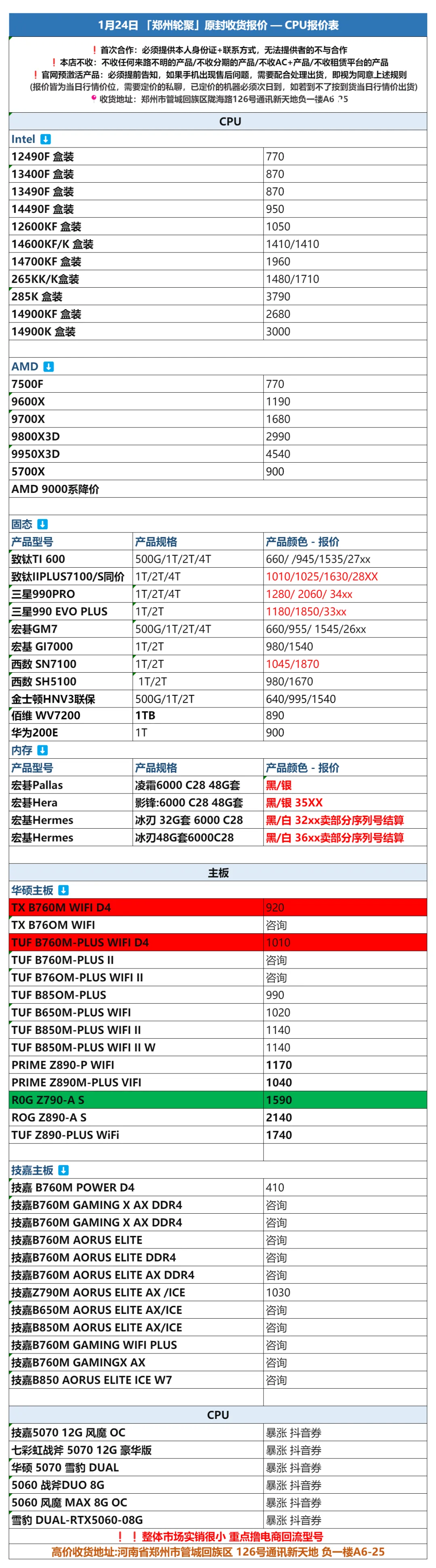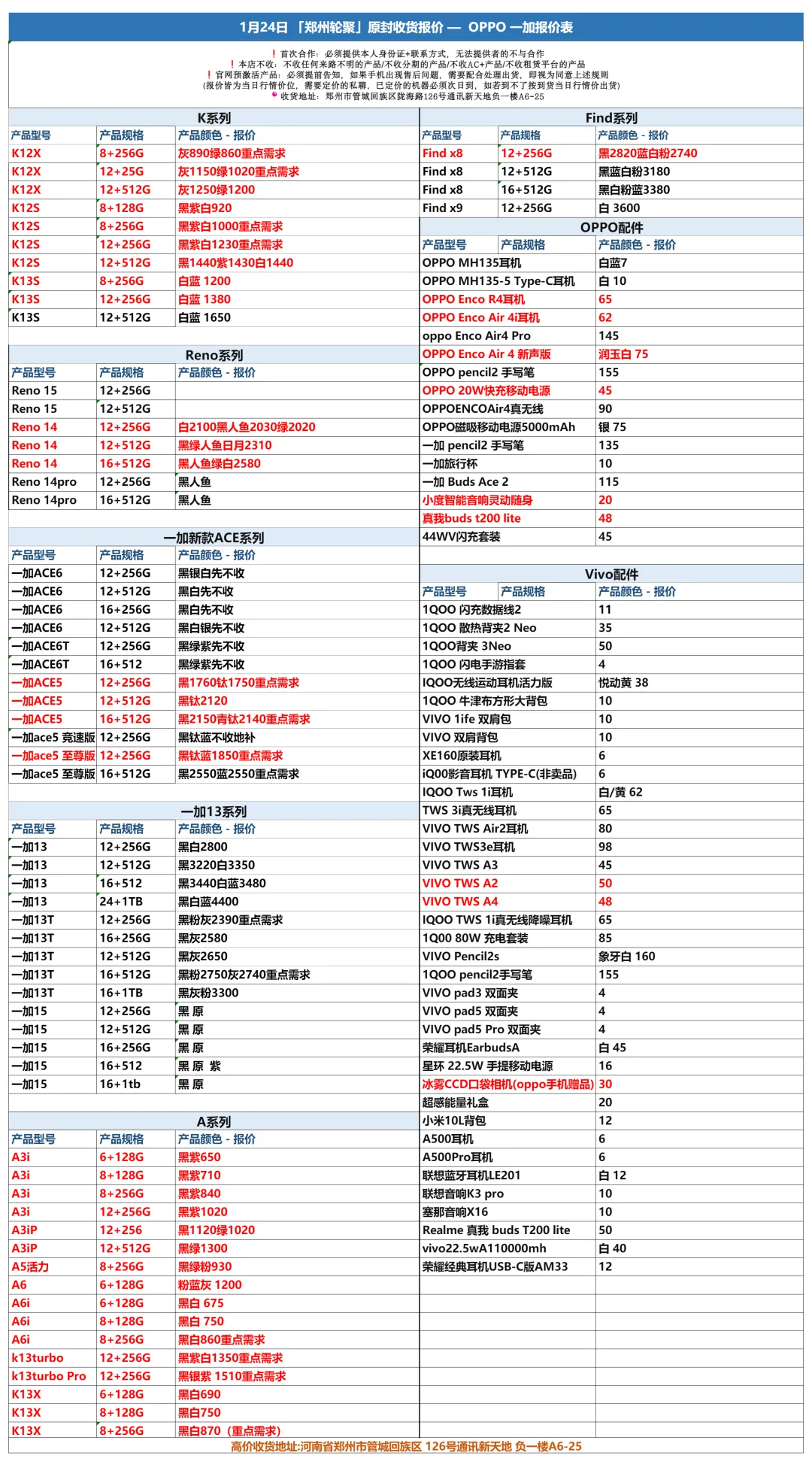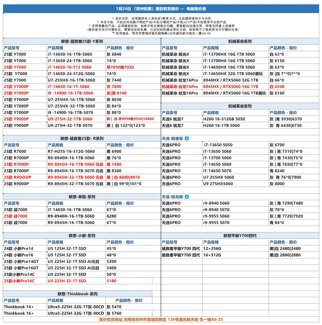 郑州轮聚通讯 2026年1.24日数码报价更新