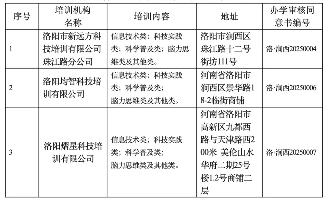关于公布涧西区科技类校外培训机构