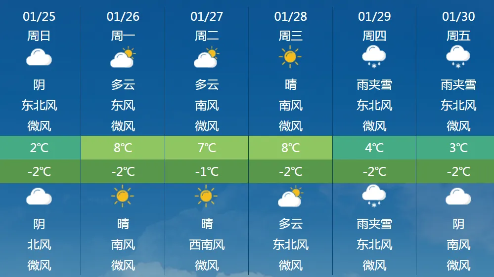 郑州市天气预报,今天白天:阴天有零星小雨雪,偏东风转偏北风:3级左右,最低气温:零下1~0℃,最高气温:1~2℃。26日:多云转晴天,零下2~8℃。