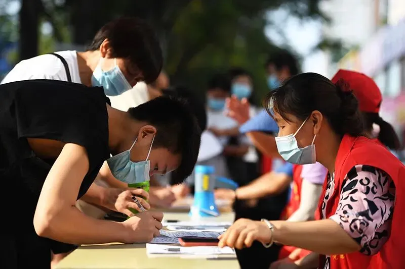 8月23日,市民在郑州市金水区丰庆路街道办事处安泰社区卫生服务中心登记疫苗接种信息