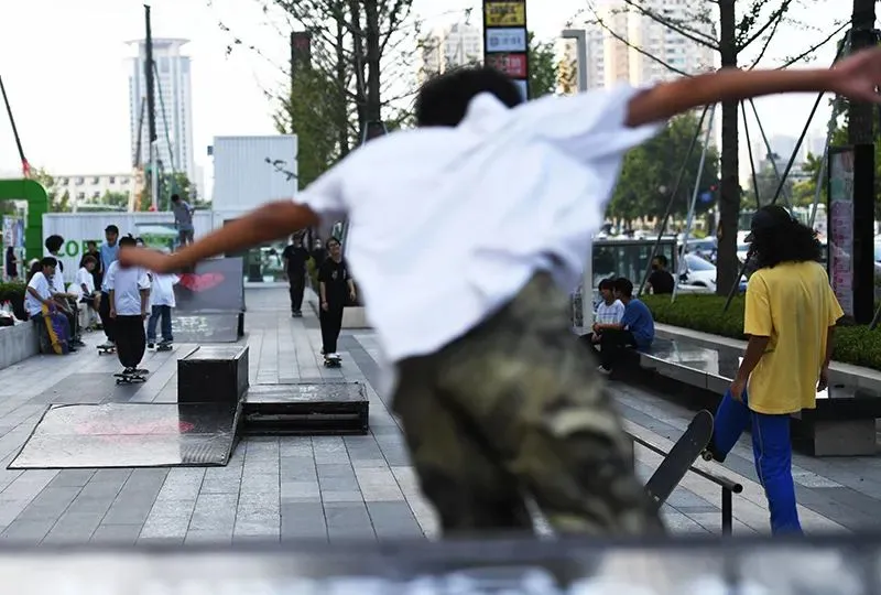 8月23日,市民在郑州市花园路一处公共场地玩滑板
