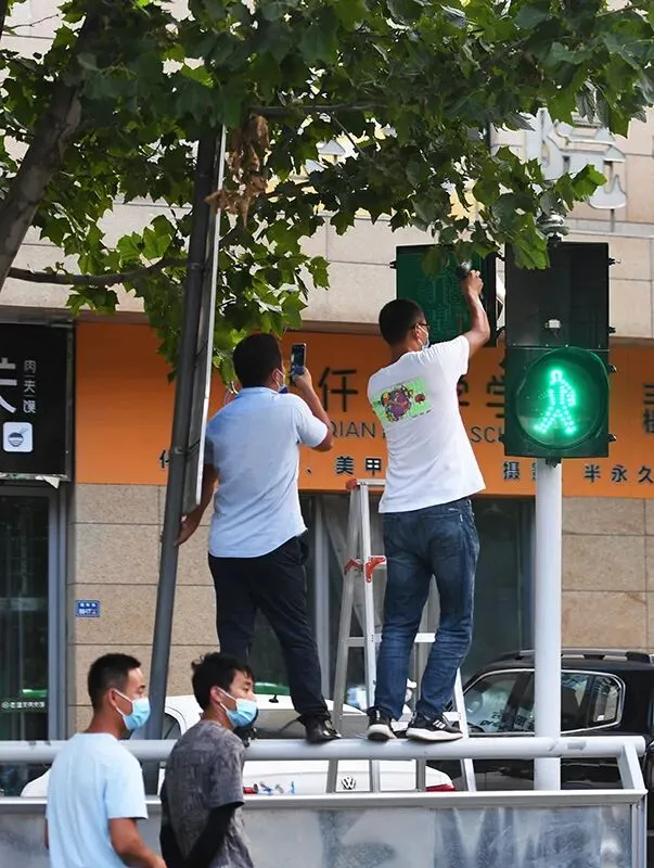 8月23日,工作人员维修郑州市二七区福寿街一处交通信号灯