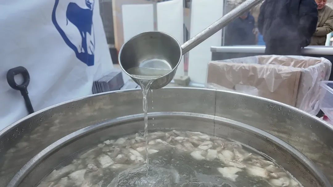 工作人员有条不紊地为市民盛汤试吃