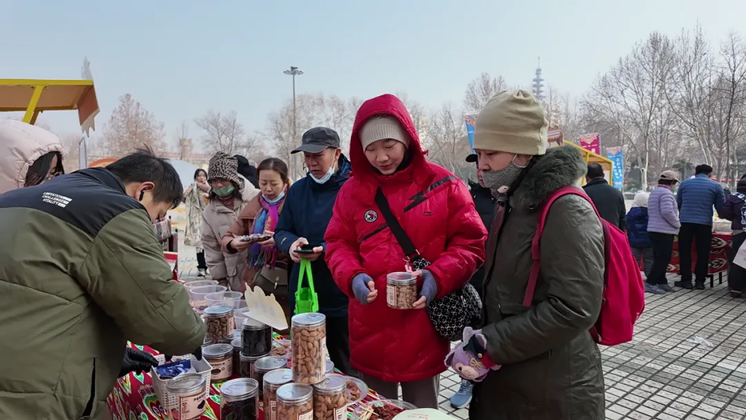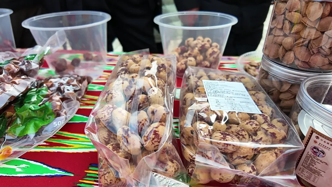 干果展区同样人气爆棚,无花果干、杏干、乌梅干等果干整齐码放,色泽诱人,巴旦木、开心果、新疆大枣等干货琳琅满目。市民们或拿起果干试吃,或询问礼盒搭配。