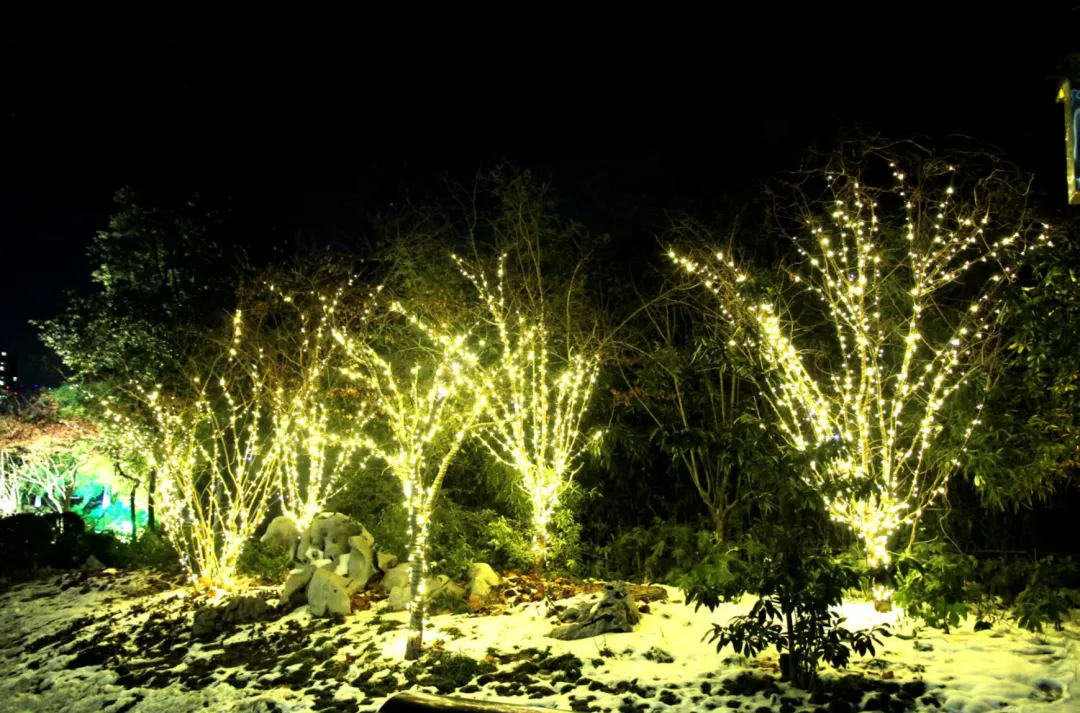 碧沙岗公园和绿城广场的夜景,是此次新春氛围营造的一大亮点。两处园区打造的15处“低碳环保、绿色出行”主题灯饰,让废弃枯枝焕发新光彩。