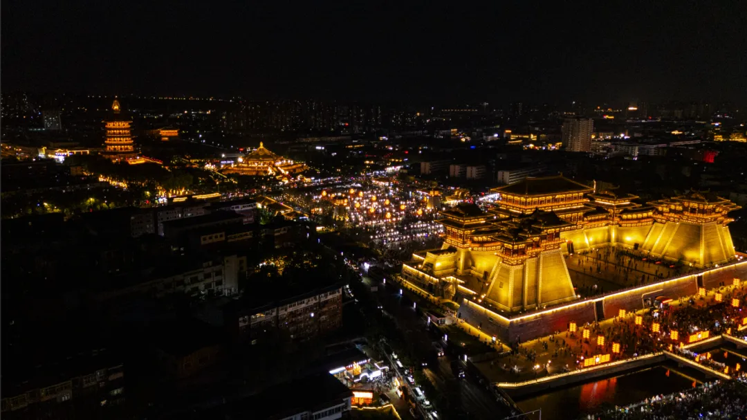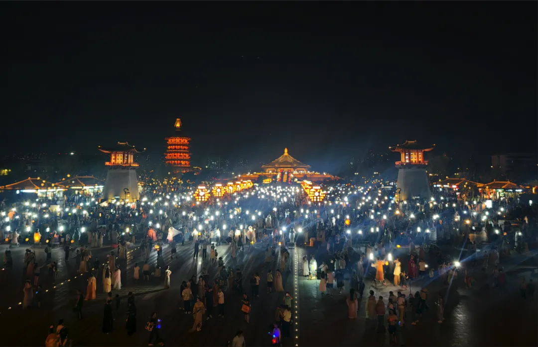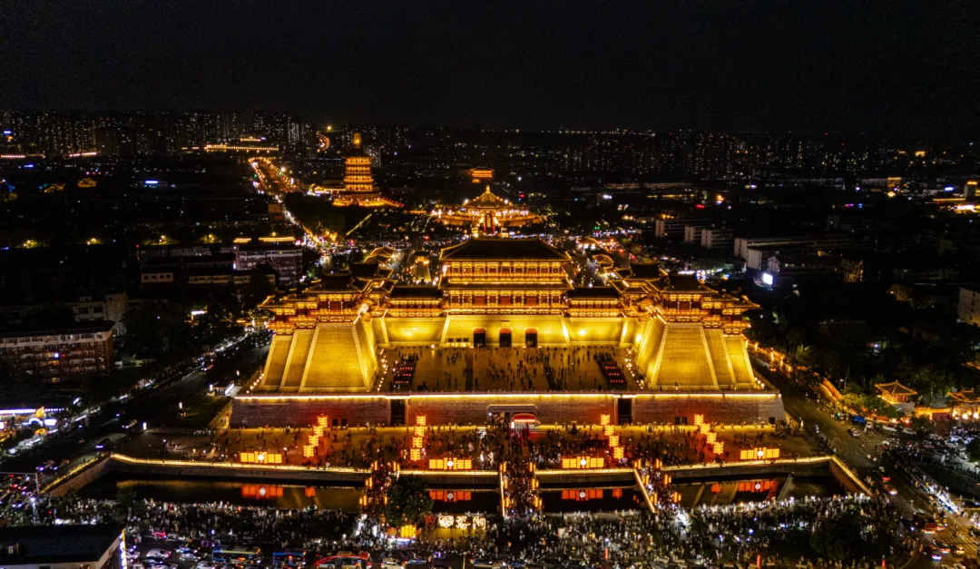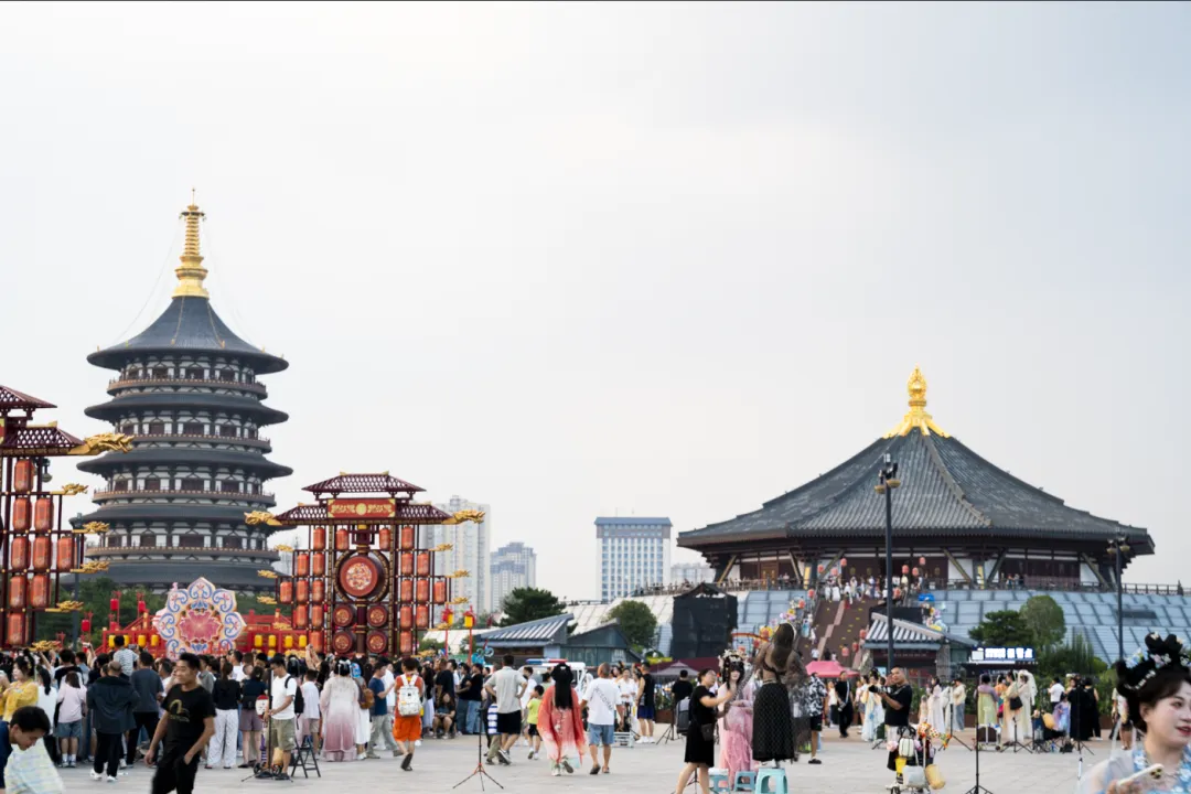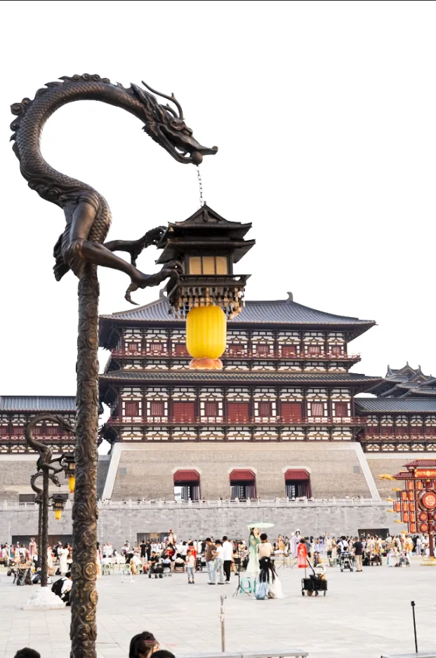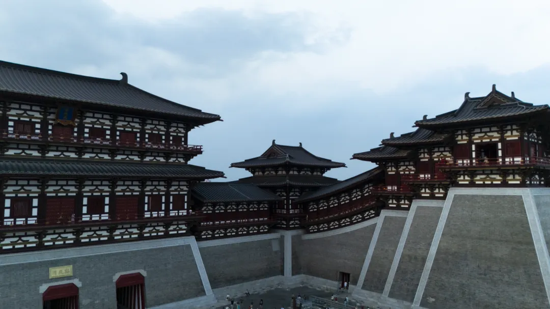 站在南广场仰头望着这高耸门楼,飞檐翘角刺破灰蒙的天空,仿佛要触摸到历史的云层。门楣上,“应天门”三个大字粗犷有力,笔画间透出岁月的沧桑,仿佛在向世人宣告:这里曾是隋唐盛世的门户,是万国来朝的见证。