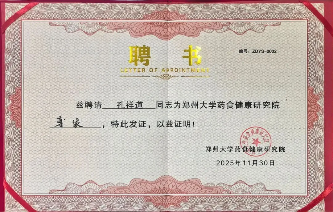 近日,亚洲厨王、中国烹饪大师孔祥道正式受聘为郑州大学药食健康研究院专家,这标志着高校药食健康研究与餐饮行业实践的深度融合,也将为河南药食同源产业发展注入新的专业力量。