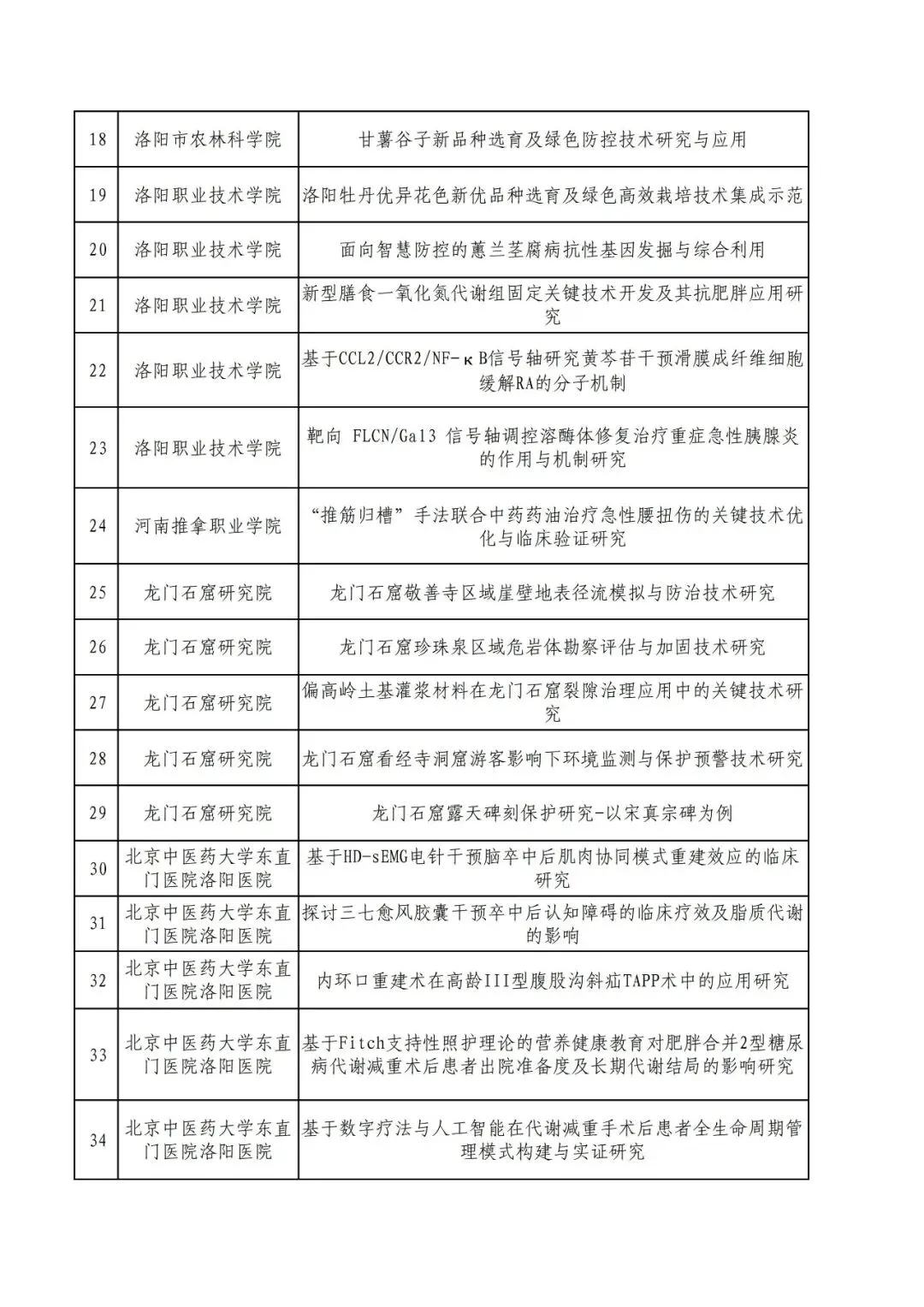 2026年度洛阳市公益性行业科研计划项目受理公示
