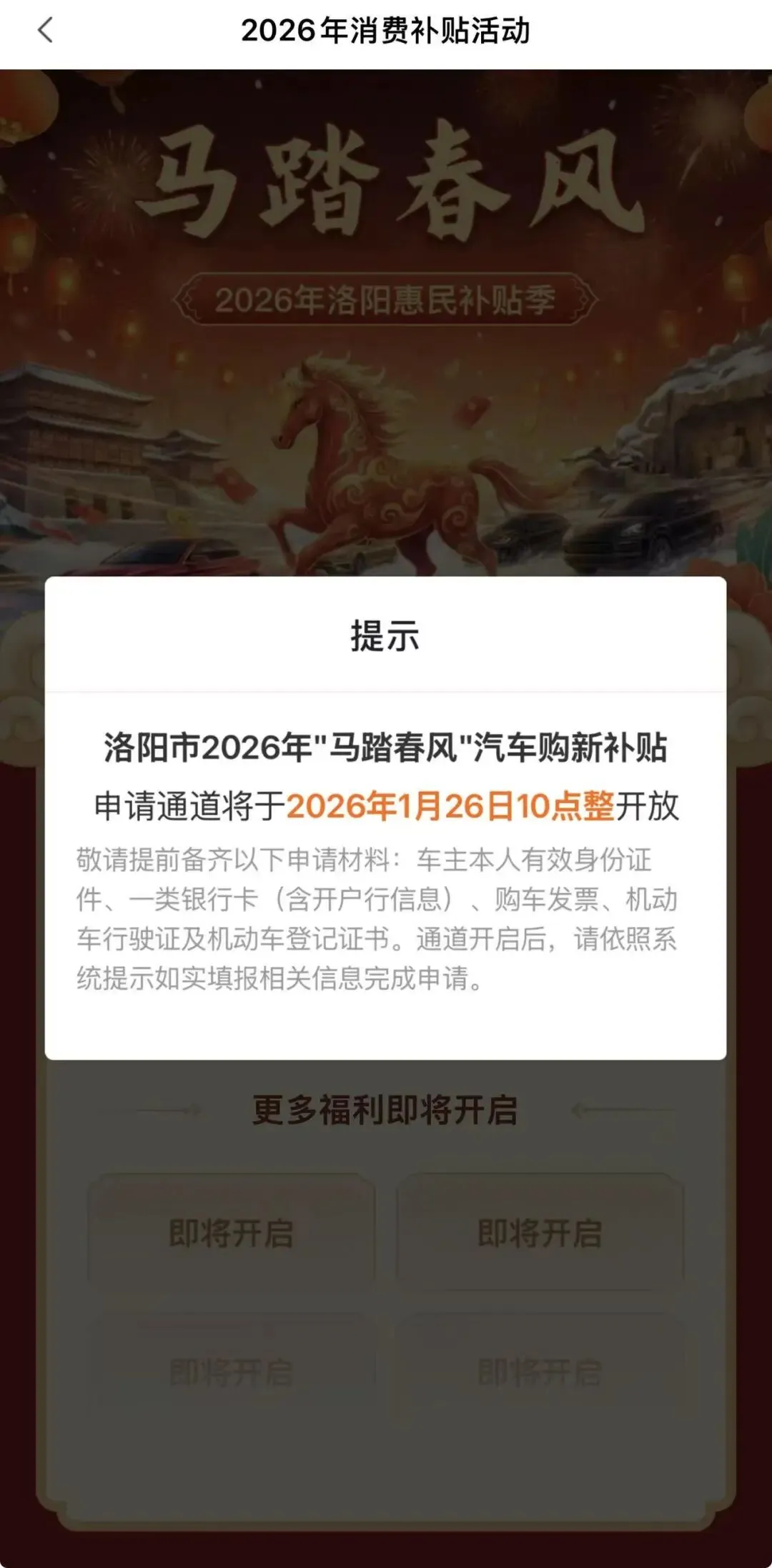 洛阳“马踏春风”汽车购新补贴