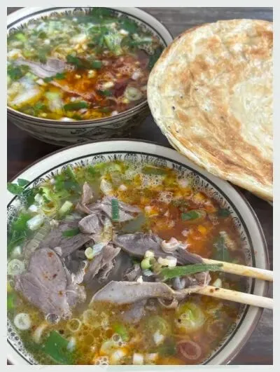 店门口的大锅冒着热气,老板是个中年男人,看见我笑了笑,问“要瘦的还是带点肥的?”我选了瘦的。他手起刀落,薄如蝉翼的肉片铺在碗底,然后舀起滚烫的汤浇上去,“滋啦”一声,肉片瞬间卷了起来。撒上一把翠绿的葱花,再淋一勺红亮亮的羊油辣子,我端着碗找了个小板凳坐下。第一口汤喝下去,鲜得我眯起眼睛——没有想象中的膻味,只有骨头熬出来的醇厚香气,顺着喉咙滑下去,身体一下子暖起来。旁边的大爷在和老板聊天,说“今天的汤熬得够火候”,我跟着点头,虽然我不知道火候是什么,但那一刻,坐在小板凳上,看着碗里的热气往上飘,突然觉得,这才是清晨该有的样子。