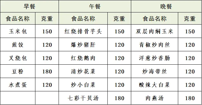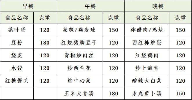 第22周食谱