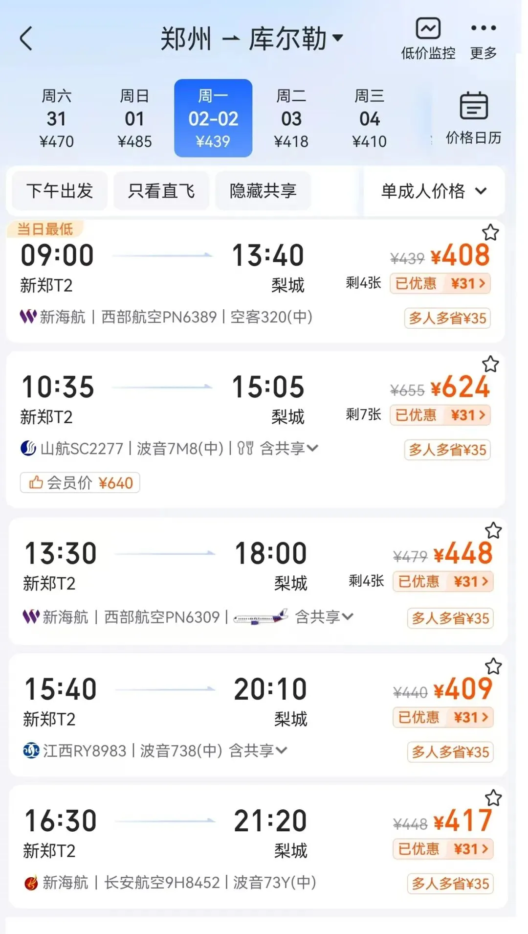 2026年春运将于2月2日拉开帷幕,1月28日起,库尔勒梨城机场联合长安航空新增春运期间库尔勒直飞郑州航线的上午航班,届时该航线航班日均达5班,覆盖早中晚时段,以更优的航线布局与更暖心的服务,全力保障春运,助力务工旅客平安、便捷、温暖返乡团圆。该航线航班号为9H8451/52,每日执飞。去程11:15从库尔勒起飞,15:30抵达郑州新郑机场T2航站楼;回程16:30从郑州起飞,21:20返回库尔勒。上午出发的航班时刻,便于旅客抵达郑州后接续高铁、汽车等交通方式,顺畅中转至河南各地及周边省份,显著缩短返乡旅途时间。