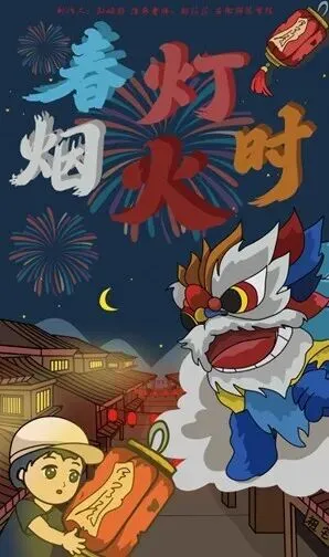以春节夜晚为背景,围绕主角小明的在春节夜晚发现一盏可以引领他穿梭时空的灯笼展开,通过他在另一时空遇见年兽抵御年兽目睹一家人温馨吃团圆饭的一系列富有传统节日氛围的场景,借此传递春节所蕴含的团圆、希望等美好寓意。