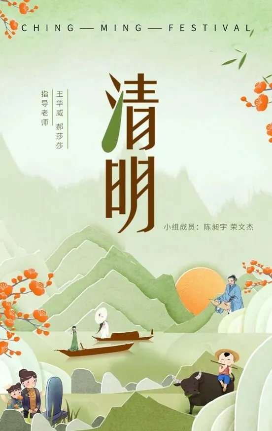 作品简介:《清明节》二维动画短片以全景叙事介绍清明节的传统文化习俗,传承中国传统文化节日的精神。通过介绍清明节的历史、应季美食、节气、民间传统游戏、踏青、诗词展现人们以不同的方式传承精神、寄托哀思,展示着文明新风。通过此短片提高观众对中国传统文化节日的认知。