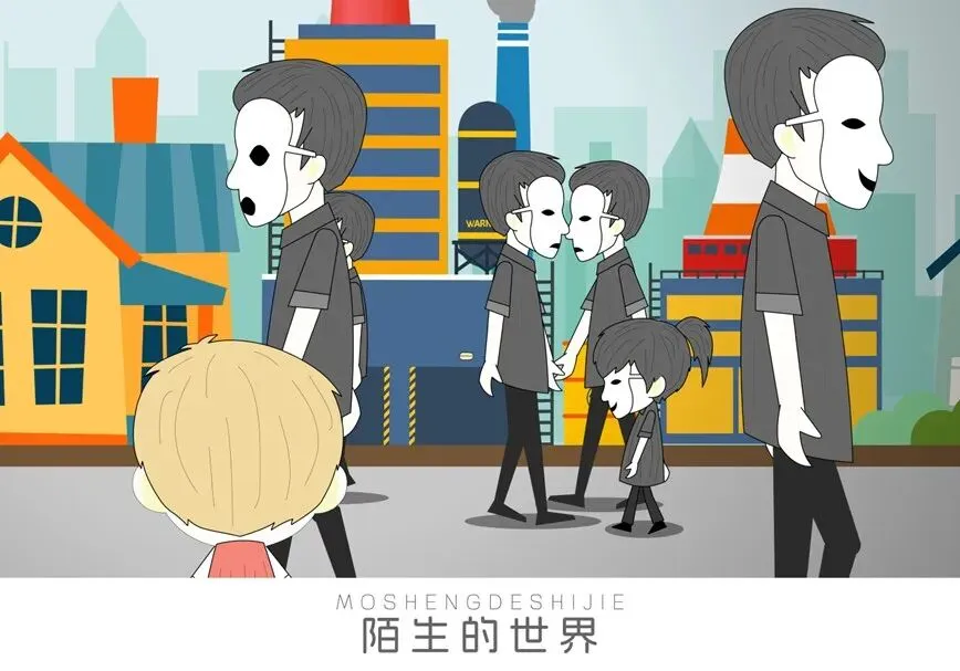 作品简介:《陌生的世界》二维动画短片既是对外部世界的凝视,也是对内在自我的叩问。在技术加速异化人性的今天,或许我们需要这样的作品,像一面诚实的镜子,映照出那些被习惯性忽略的真相:我们戴上的每一副面具,都在悄悄改写自己的脸。