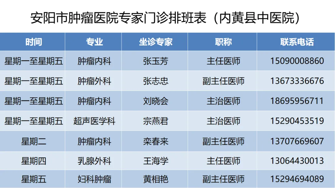 >安阳市肿瘤防治专科医联体丨安阳市肿瘤医院在医联体成员单位1月26日—1月30日专家门诊排班表