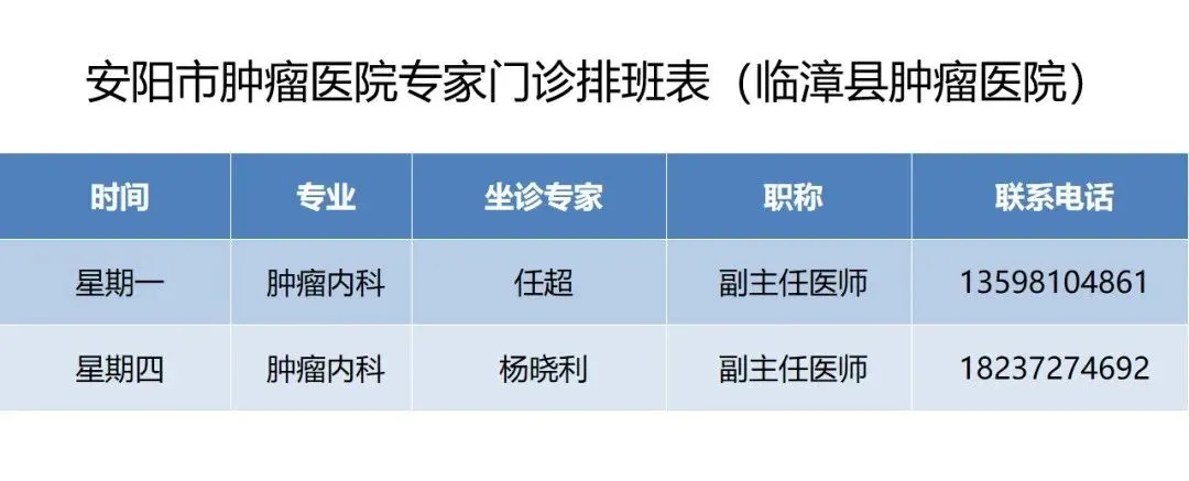 安阳市肿瘤防治专科医联体丨安阳市肿瘤医院在医联体成员单位1月26日—1月30日专家门诊排班表