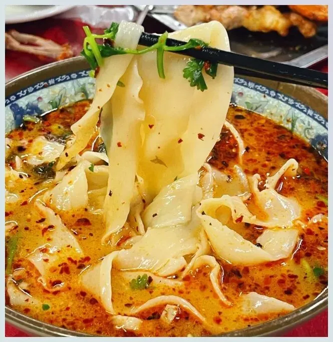 碗端上来时,胡椒的辛辣先扑进鼻子。汤里浮着牛肉丁、木耳,稠得粘住勺子。第一口下去,辣意顺着喉咙窜到头顶,眼泪差点掉下来,却瞬间醒了神。配着炸得金黄的油饼,咔嚓一声,油脂香混着辣意炸开。旁边大爷边喝边说“今天汤比昨天浓”,老板笑着擦桌子:“牛肉熬了仨钟头。”胃里暖烘烘的,突然觉得这座城的踏实,都藏在这碗汤里。