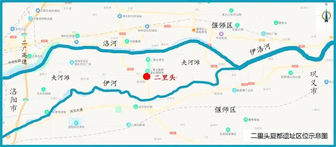 ▲夏都斟鄩遗址(今洛阳市偃师区二里头)区位示意图。