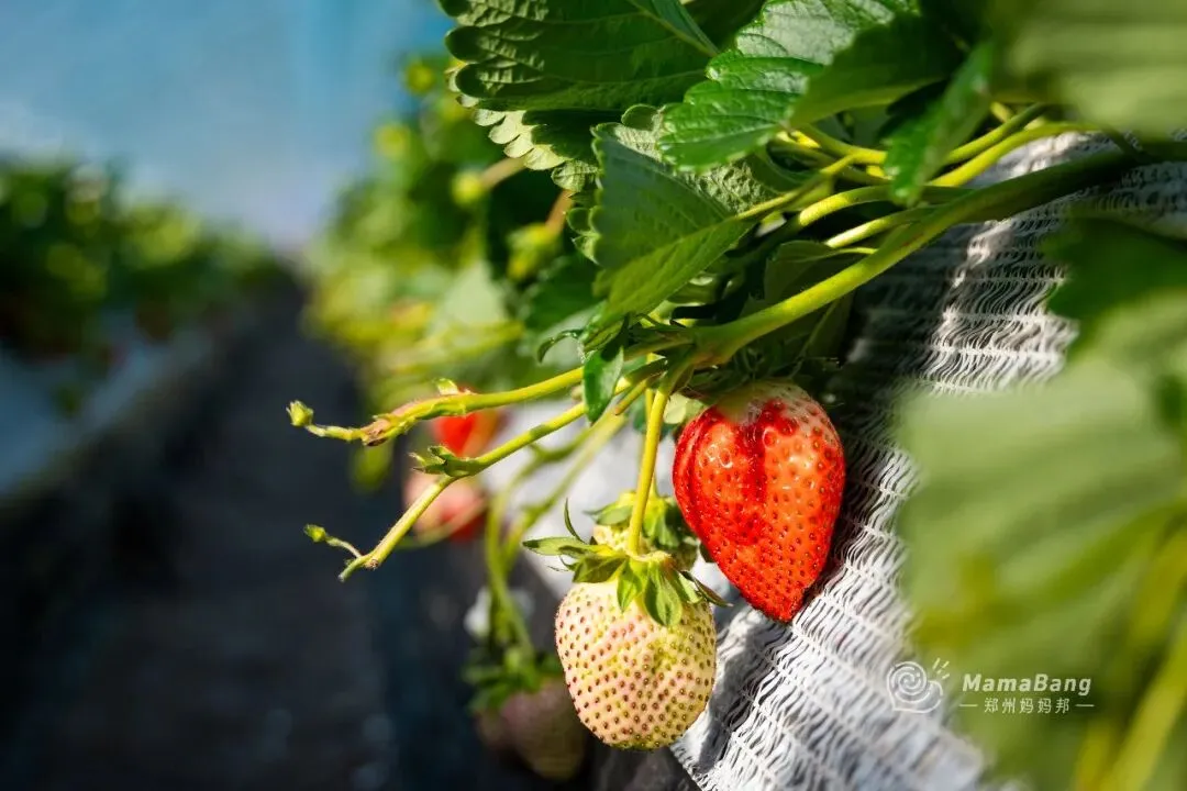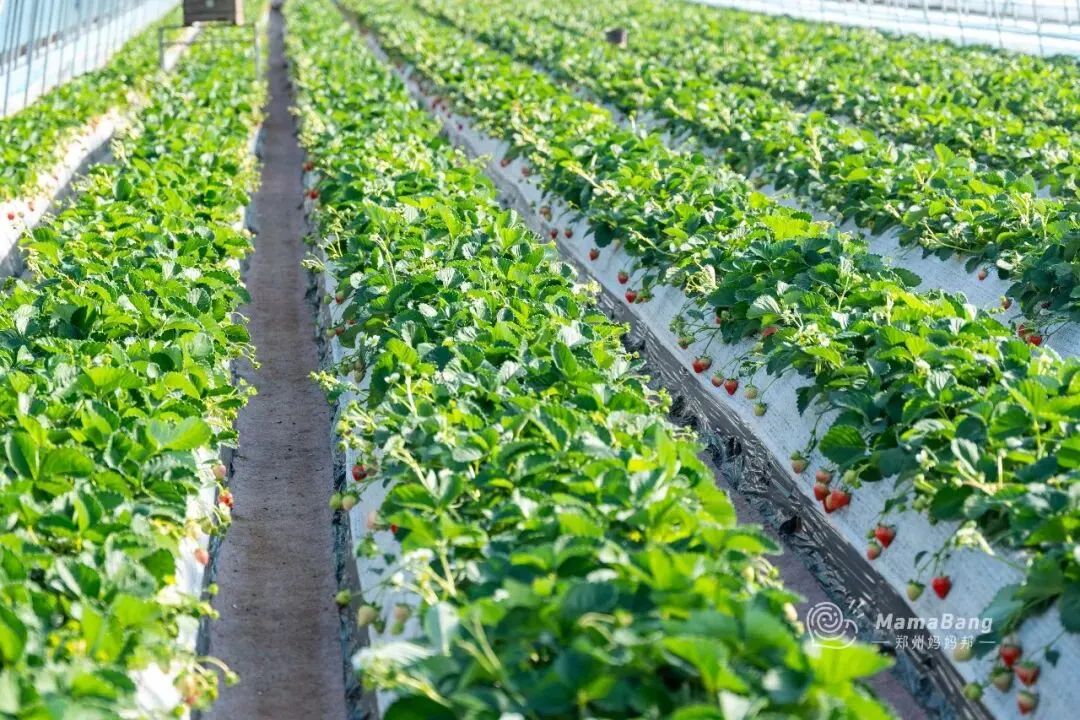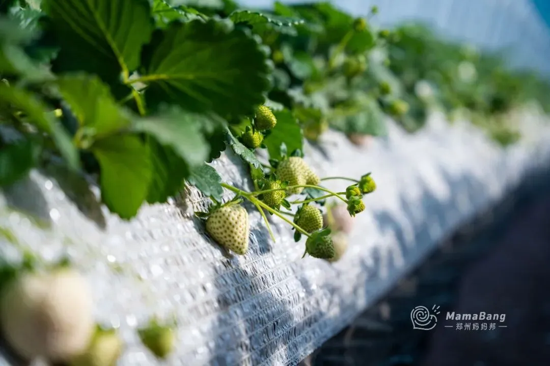 是不是和普通草莓园不一样,垄更高,也更聚拢,表面用薄膜覆盖着的,草莓垂在垄的两侧,灌溉也是滴水式的,沾到土的几率真的很小。