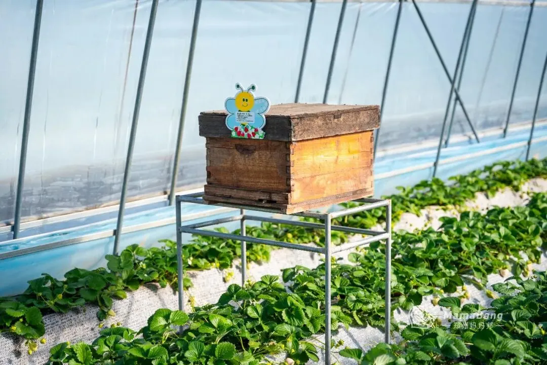 每个大棚里都有蜂箱,蜜蜂授粉的,带孩子去的要看好孩子,注意蜜蜂。