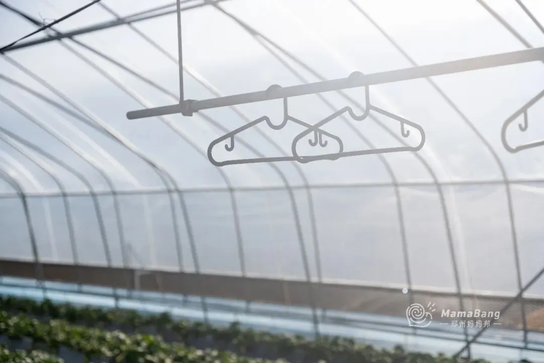 棚里都是采用科学控温方式,是最适宜草莓生长的温度,要进棚采摘的话,可以先把外套脱了,里面贴心的准备有晾衣架,不用担心没地方挂。