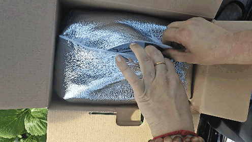外面用保温袋和塑料膜层层包着的,也是想着尽可能在包装上下功夫,让运输损耗小点。