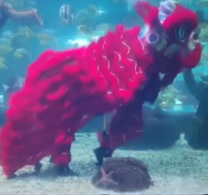 ●沈阳一海洋馆水下舞狮,网友称像极了《西游记》中的"避水金睛兽",最新回应:是专业人员,表演时身挂铅块、背氧气瓶。详见>>