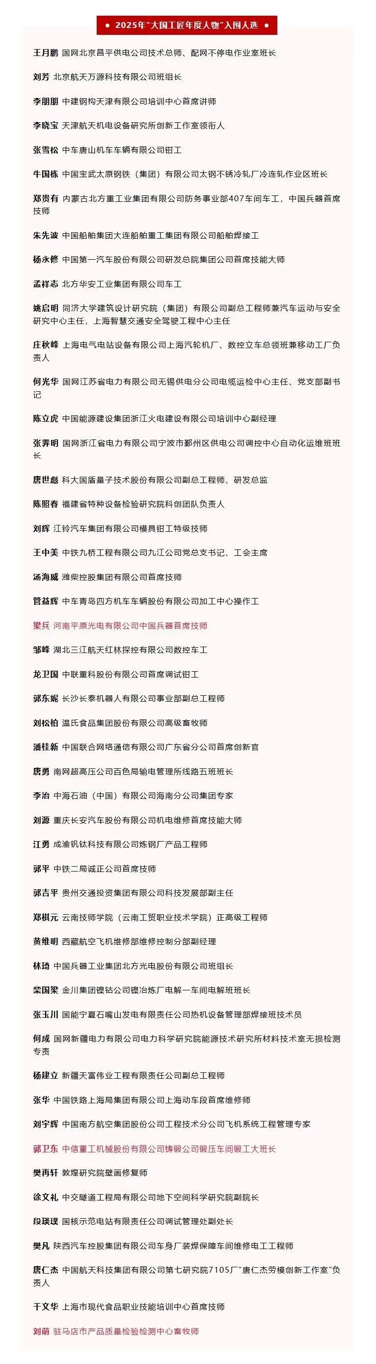 ●1月24日,2025年“大国工匠年度人物”宣传活动在甘肃兰州录制发布仪式,现场揭晓50位入围人选,入围人选包含10位年度人物及40位提名人选。其中,河南3人。(上下滑动查看↓↓↓)