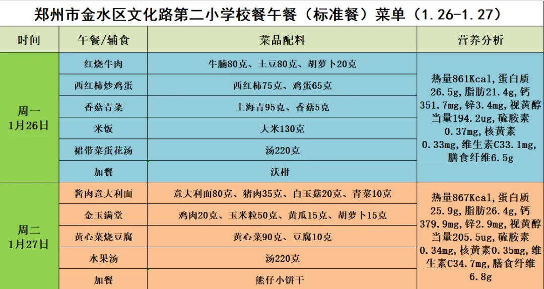 健康饮食是孩子成长的根基,我们秉持着学生膳食“安全、均衡、营养”的原则,根据季节挑选时令蔬菜、肉蛋、水果、谷物等新鲜食材,制定每周营养食谱,精心烹饪学生的每一餐。让我们一起来看看本周的食谱吧!
