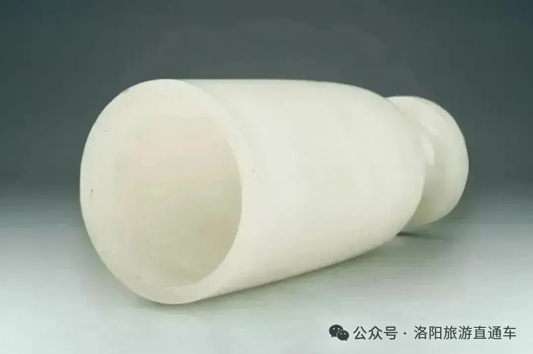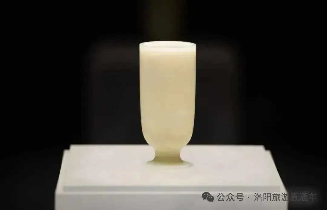 杯子的高度约为13厘米,杯口的直径约为5厘米,它采用的是名贵的和田美玉雕琢而成,它的整体为圆体造型,直筒筒,圆饼型高足。它通体没有花纹,却给人们以强烈的自然简约之美,它完美体现了魏晋时期中正平和,大道至简的艺术风格,据说它是目前我们国家发现的三国时期最精美的酒器。