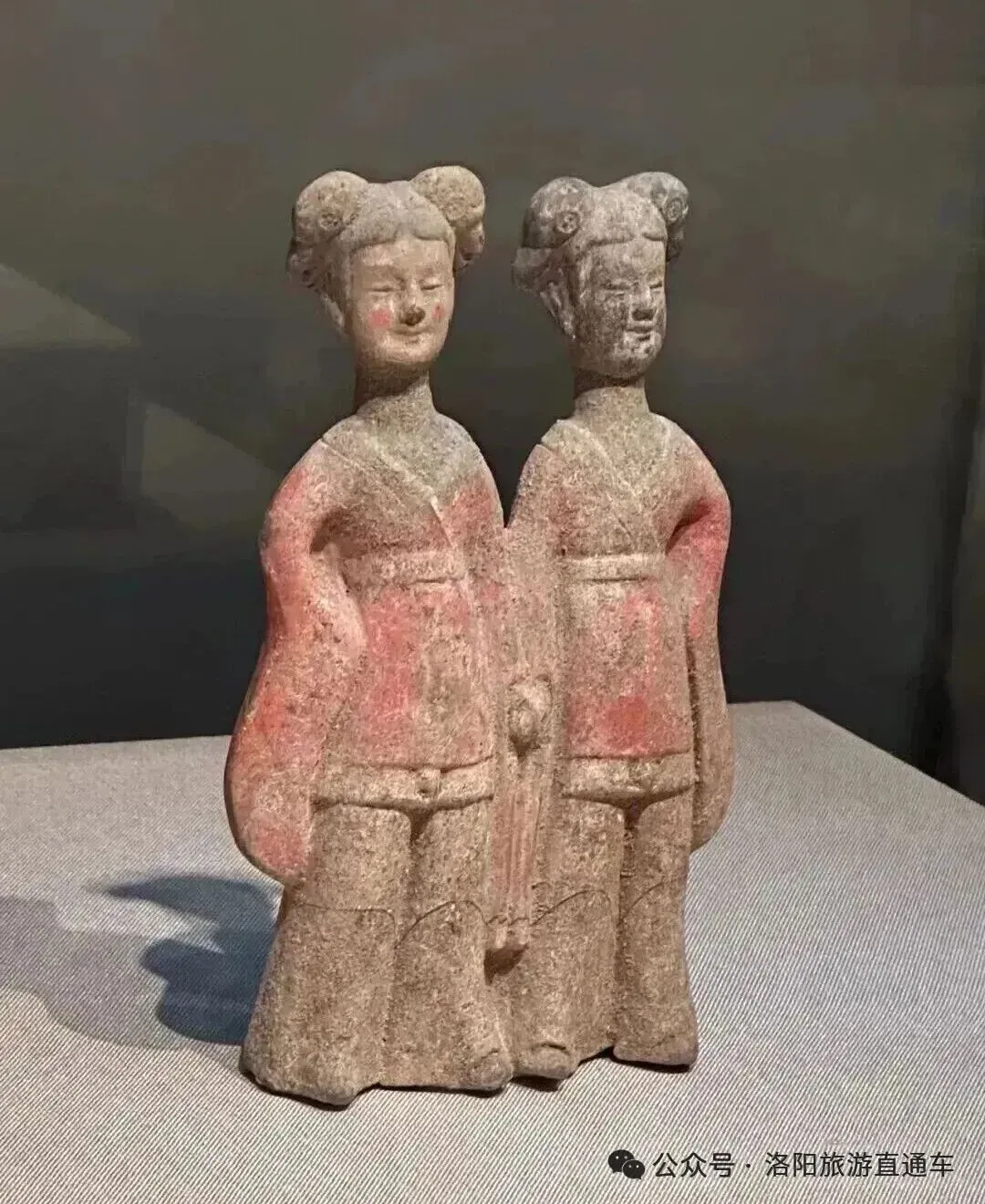 这对彩绘陶俑以连臂并跪造型闻名,服饰纹样清晰,生动再现汉代生活场景,如今已成为闺蜜打卡必拍文物,吸引无数女生前来“复刻”千年前的友情pose。