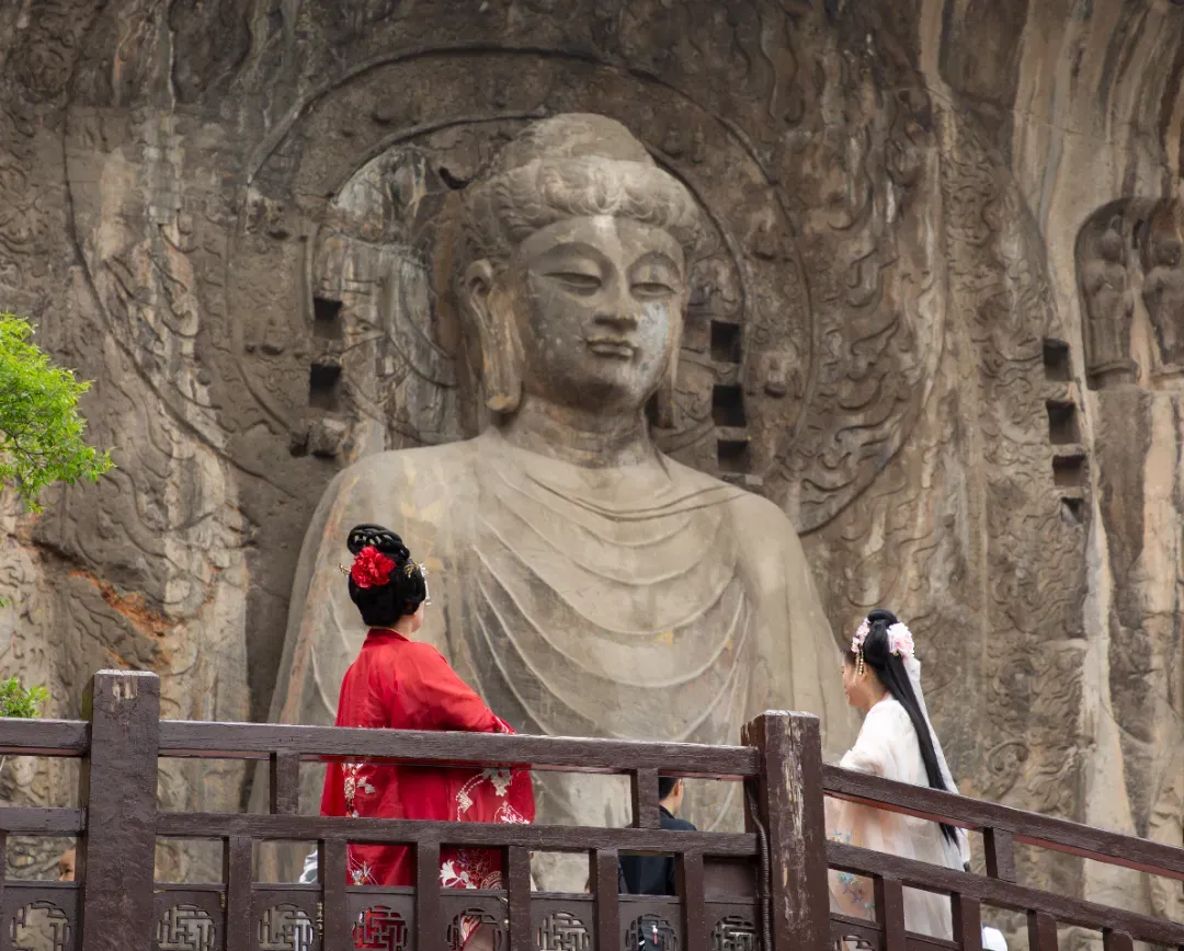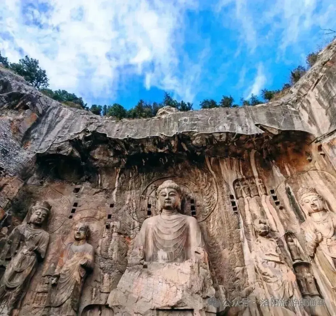 龙门石窟的标志性景点,卢舍那大佛通高17.14米,是唐代佛教造像的巅峰之作,展现了盛唐时期的艺术成就和审美追求。