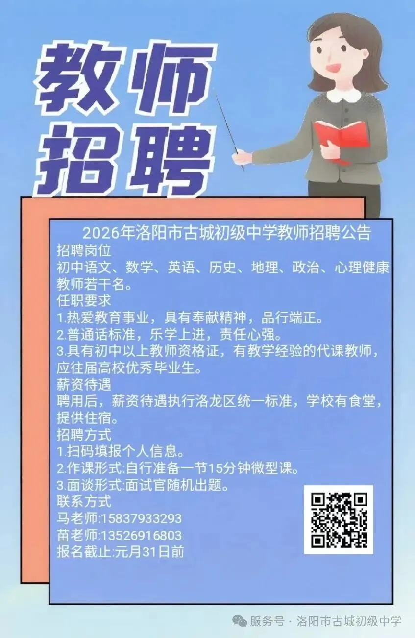 【至1.31日】2026年春季洛阳理工附属初中(原古城中学)招聘代课教师